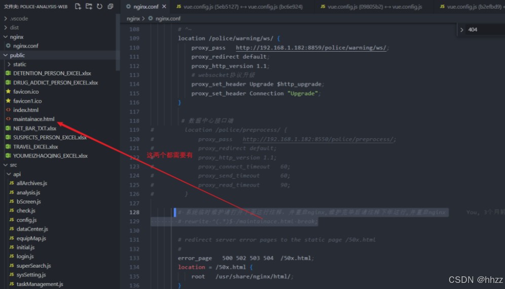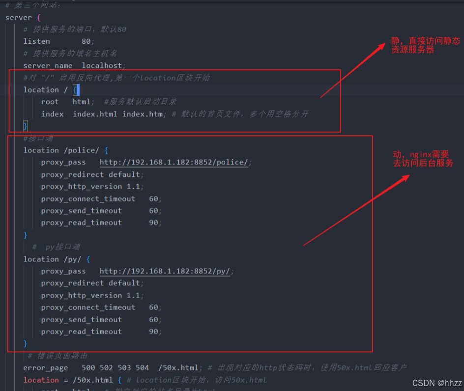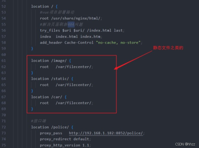 例如我们通过axios去访问/police/getList这个后台接口时,nginx会将这个请求转发到ip端口为http://192.168.1.182:8852的后台中,后台将结果返回给nginx,nginx再把结果给到浏览器,实现反向代理。