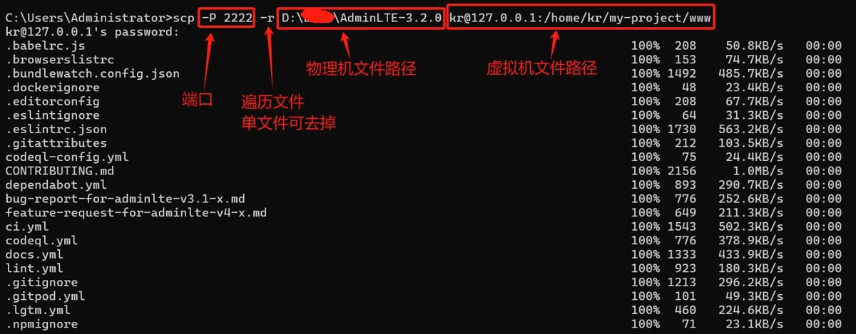 /home/kerui/my-project//www目录中; - 等待传输完成,此时虚拟机中会出现