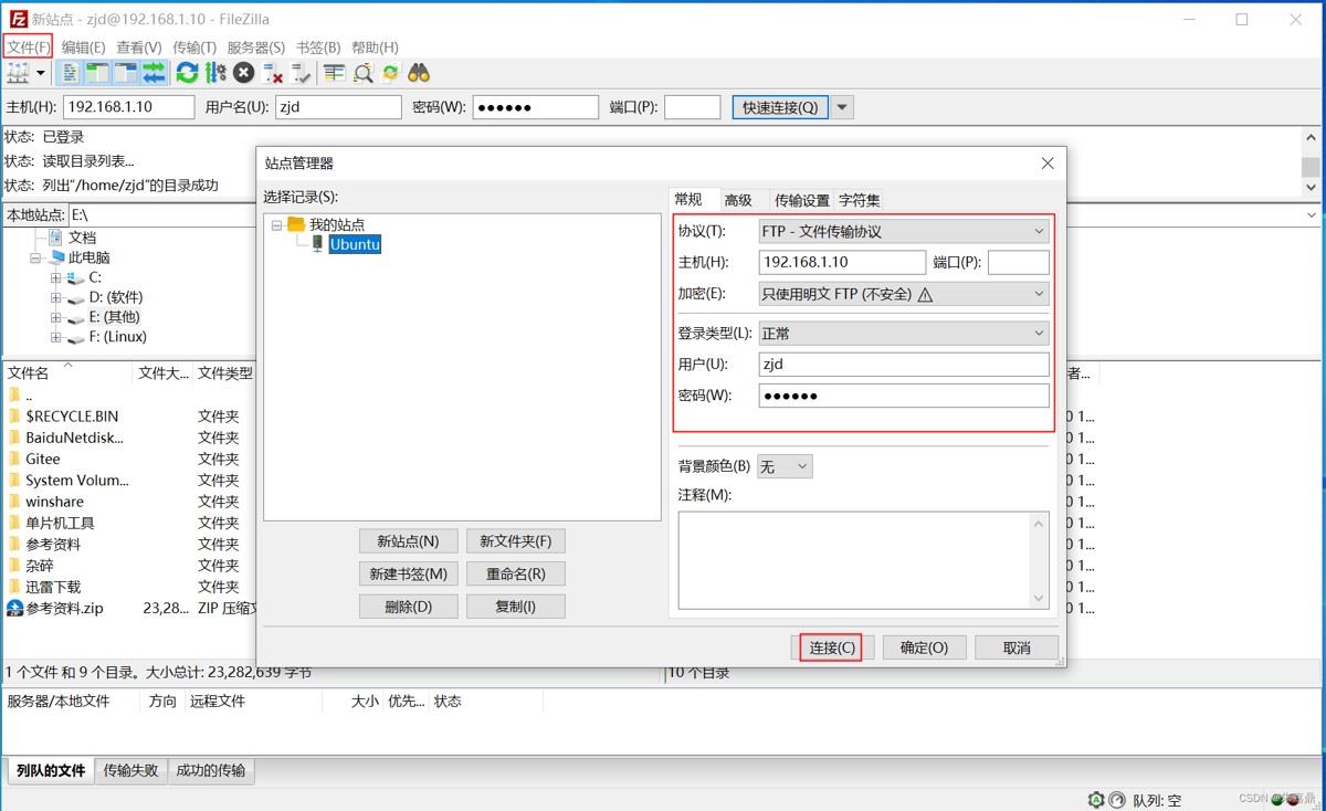 (1)FileZilla是一款免费的工具,基于FTP协议进行文件互传的,在传输过程中ubuntu是作为服务器,windows作为客户端。