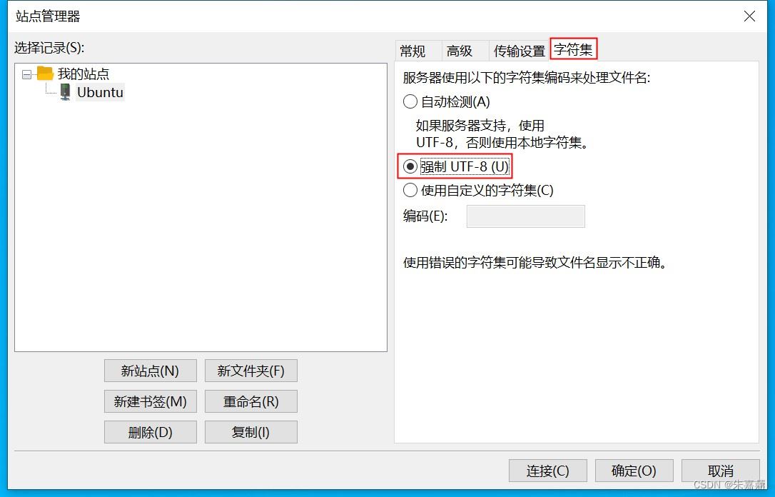 (3)点击字符集,配置如下,不然可能文件名有乱码。