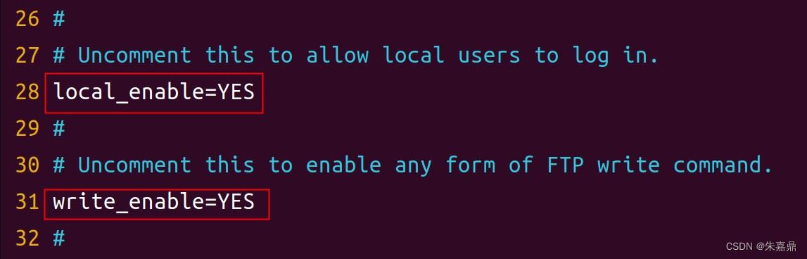 (3)然后检查下图 28 和 31 行的内容是否有被注释掉,如果前面有 “#” 号注释起来的话,去掉即可。