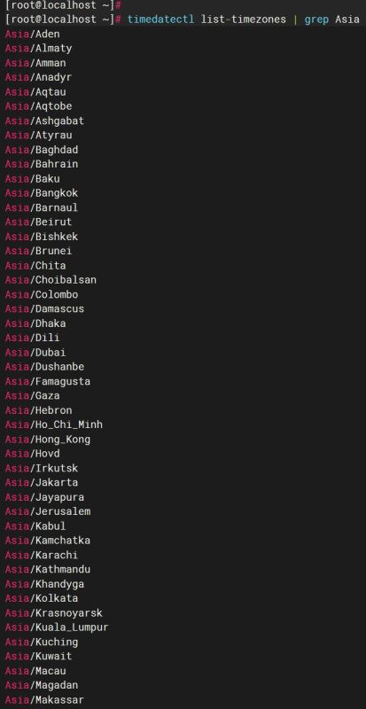 第一步先设置时区,敲下面的命令查看亚洲时区列表。