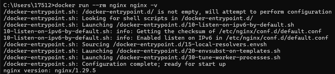 docker run --rm nginx nginx -v
