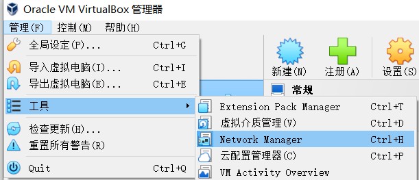首先需要配置全局的NAT网络,依次点击“管理”=>“工具”=>“Network Manager”: