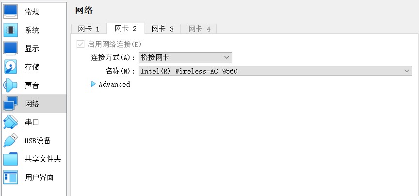 1.2 网卡2:桥接网卡