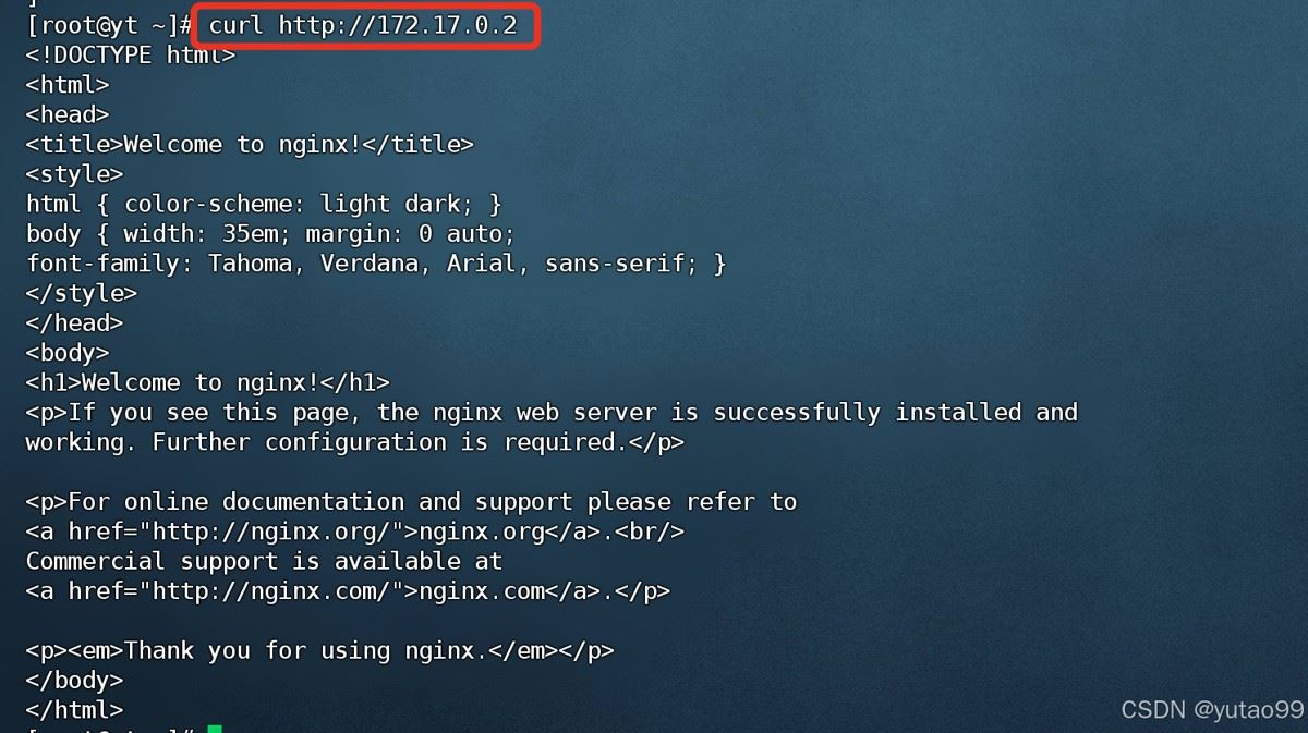 curl http://172.17.0.2 或 curl -I http://172.17.0.2