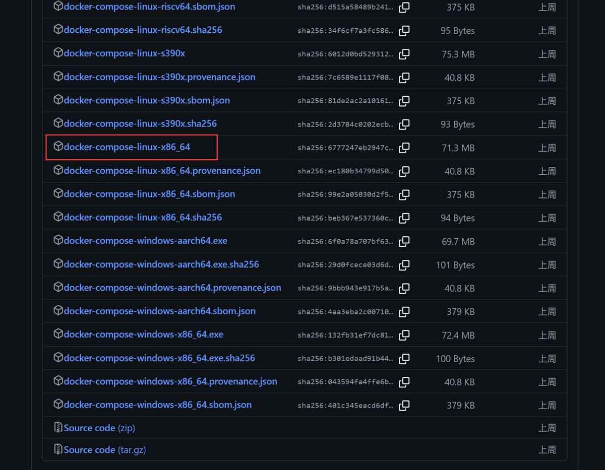在下载页面找到docker-compose-linux-x86_64文件下载