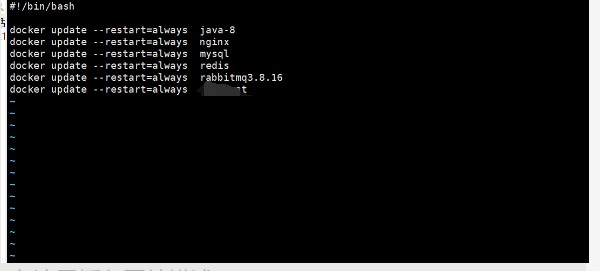 #!/bin/bash docker update --restart=always java-8 docker update --restart=always nginx docker update --restart=always mysql docker update --restart=always redis docker update --restart=always rabbitmq3.8.16