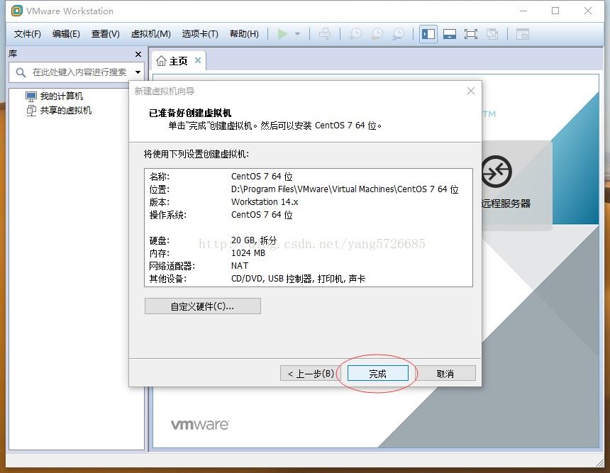 创建完成,确认虚拟机信息(其实以后也可以修改),点“完成”即可。出现了下面的界面: