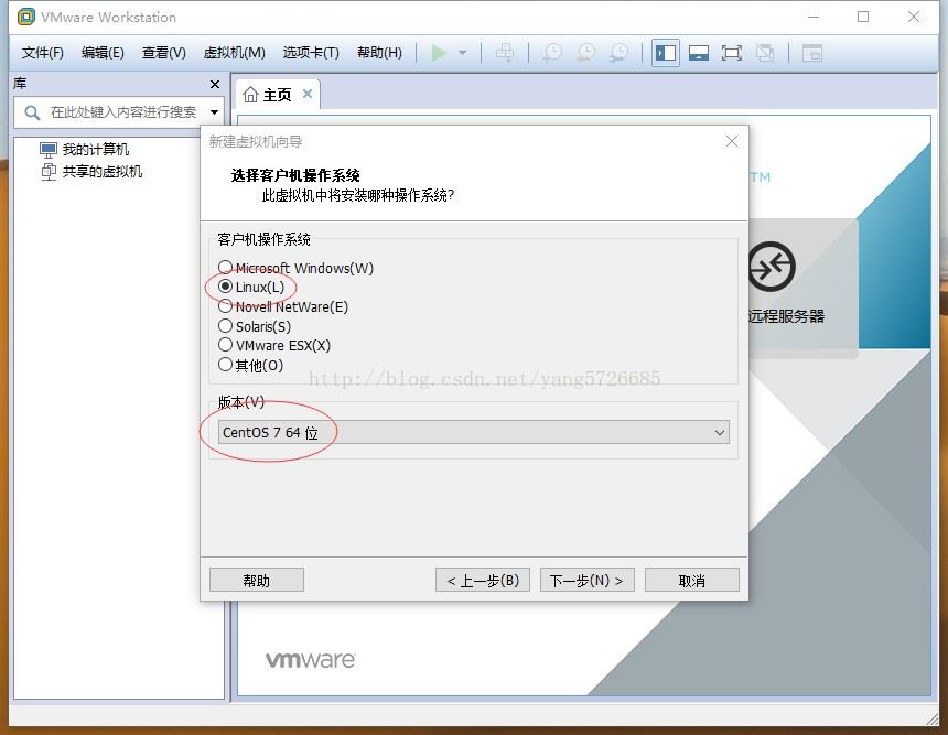 上图指的是,打算在虚拟机中模拟一个怎样的操作系统,这里选择Linux,Version里选择CentOS 64位,下一步: