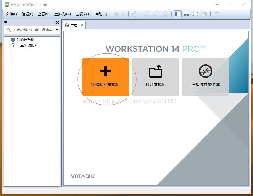 打开安装好的VMware (如果大家安装的VMware是英文版的也没关系,对号入座即可),选择“文件--->新建虚拟机”,如图: