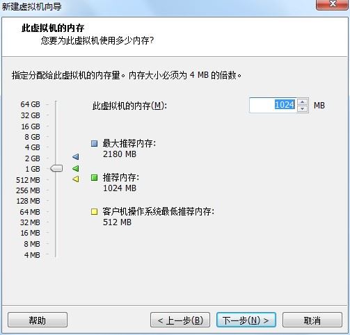 注:虚拟内存分配,一般选默认的1024MB就行(注:给虚拟机分配的内存不能超过物理 内存的一半,而且稍后如果想要使用图形界面安装CentOS,至少要分配628M的内存)。