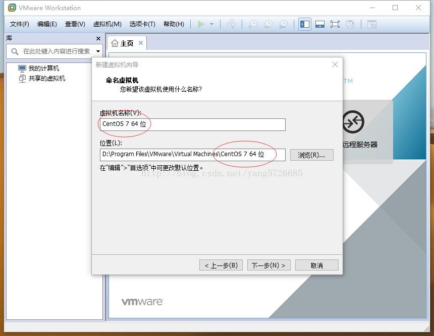 输入虚拟机名称(可以随便起),选择镜像文件存放的路径。下一步: