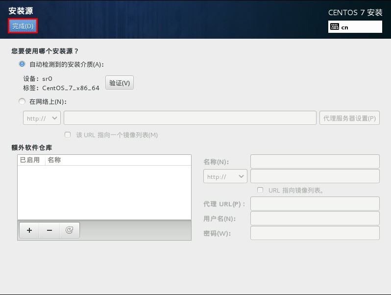 可以看到,安装源是自动检测的,不用修改,单击“完成”即可。