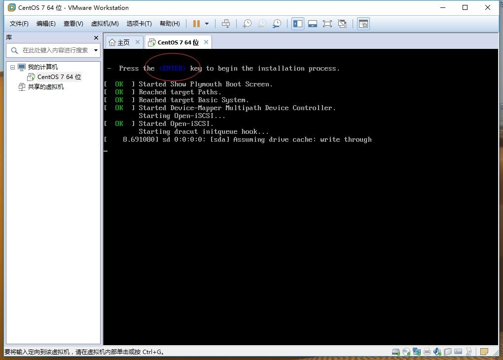 然后点击”开启此虚拟机“,启动虚拟机。