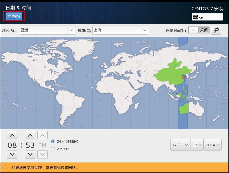 如果你安装的是英文版,需要将时区改为上海。本人安装的是中文版,选择默认的上海时间即可。