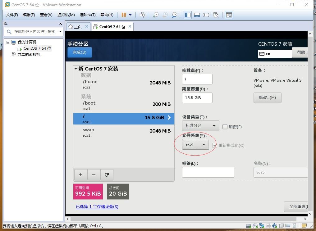 根据上图所示,分区方案选择“标准分区”。并开始挂载分区: