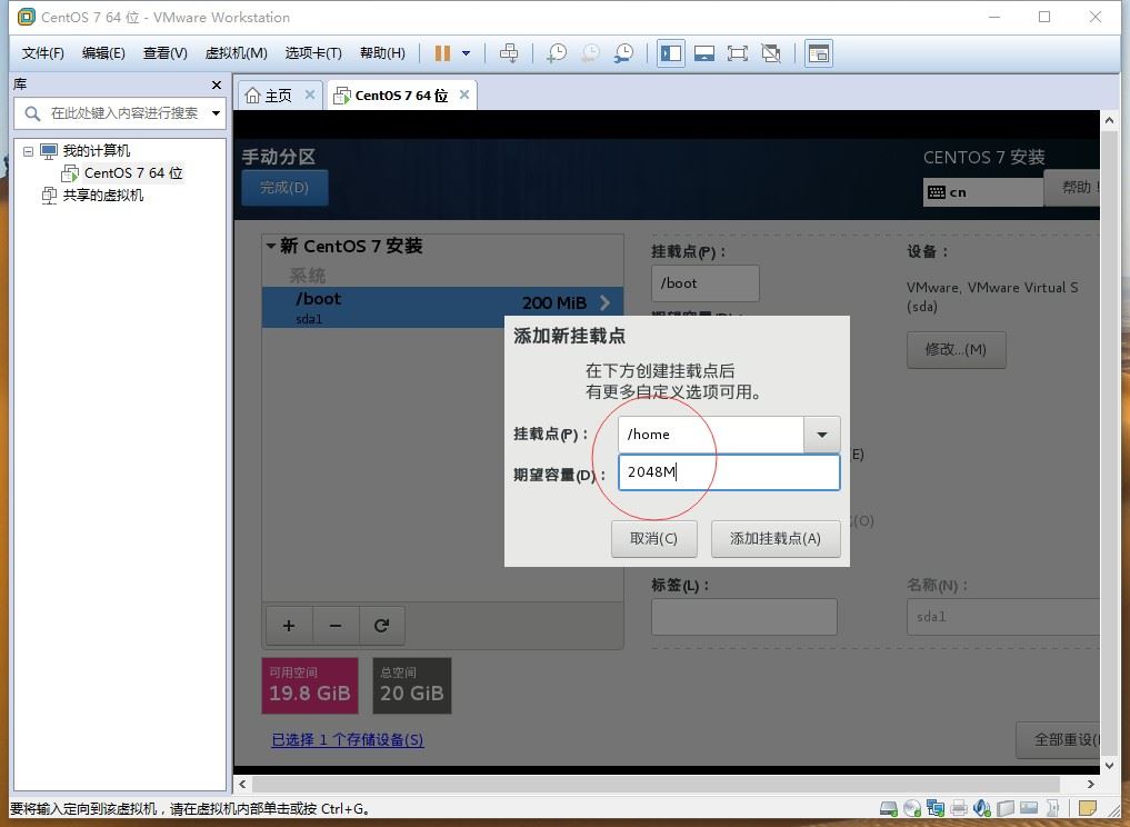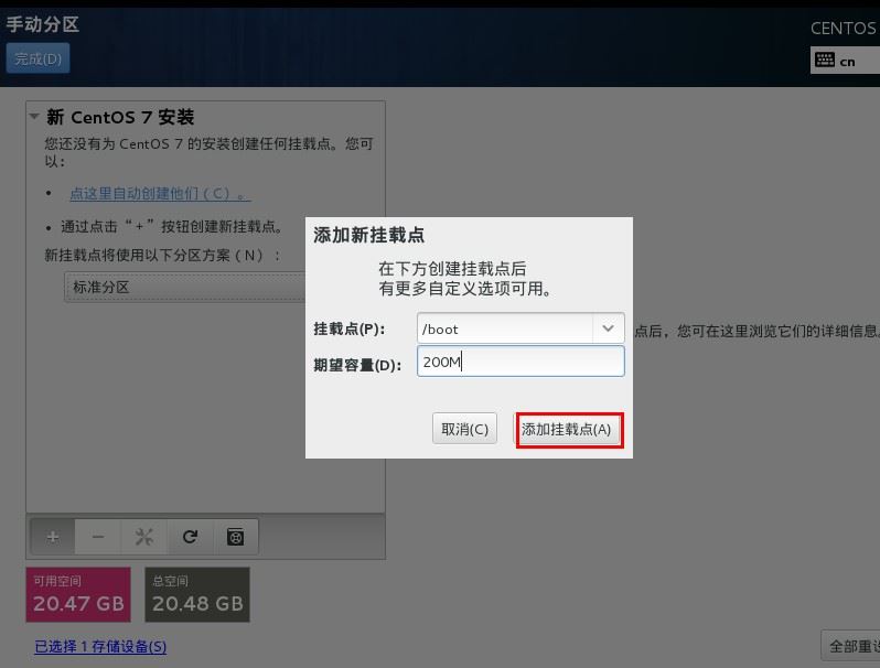 将/boot分区设为200M: