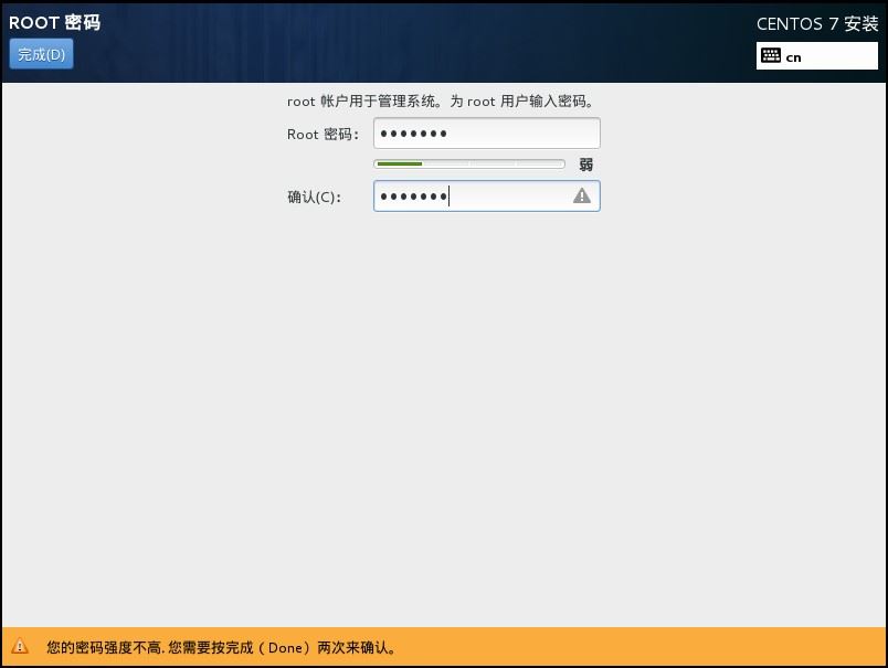 在安装的过程中,我们可以设置一下root密码,密码需要8位以上,包含大小写、数字和特殊字符,如:Admin123.com ,避免以后忘记,还可以创建一个常用账号: