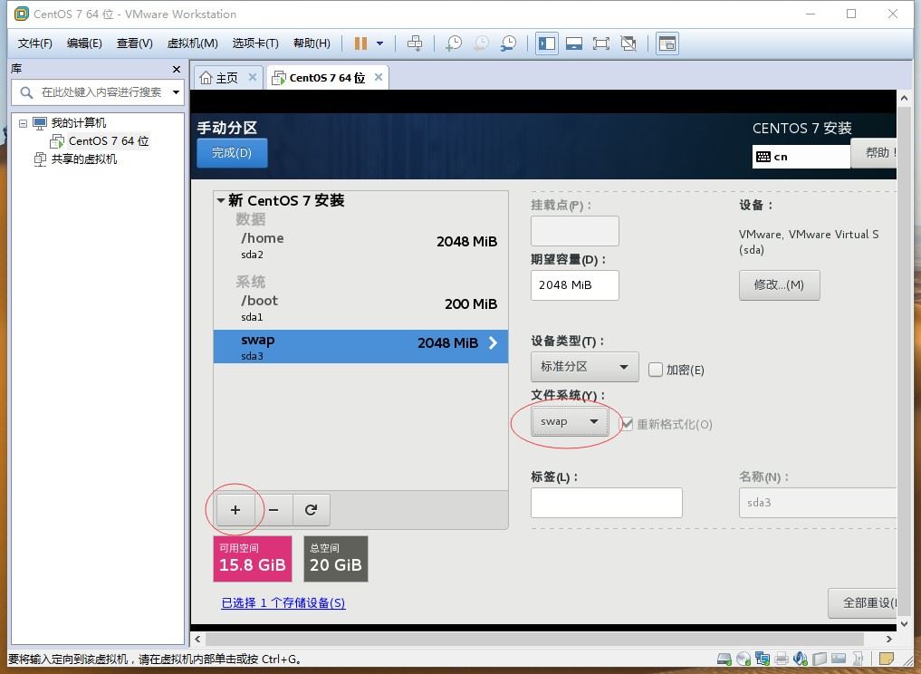 将swap分区设为2048M:(这里不用修改文件系统方式,默认的方式为swap即可)