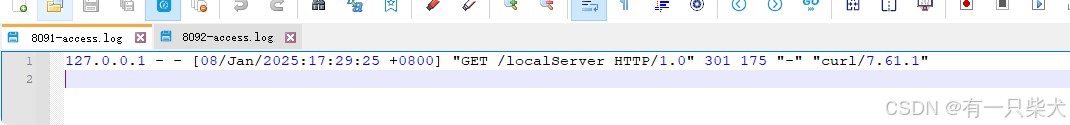 由于8081和8082服务都配置了access log,因此当我们访问http://localhost:8080时,预期的结果是访问请求能得到正常的回显,并且8081和8082服务的access log都有相应的访问日志。