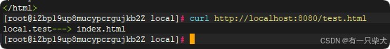 }接着在nginx的html目录下,创建local目录和mirror目录,并创建文件test.html。test.html内容随便填写: