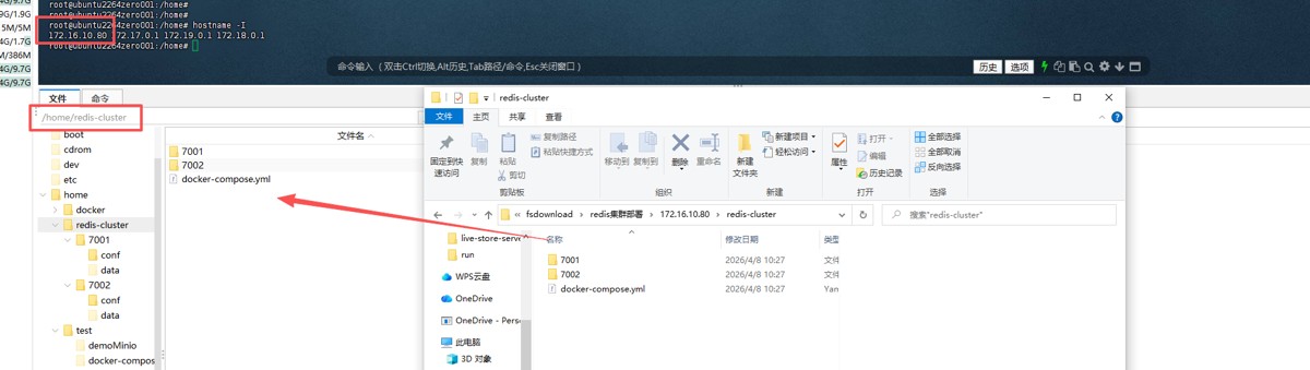 将 redis集群部署\ip\redis-cluster 文件夹上传到对应服务器 /home 文件夹下