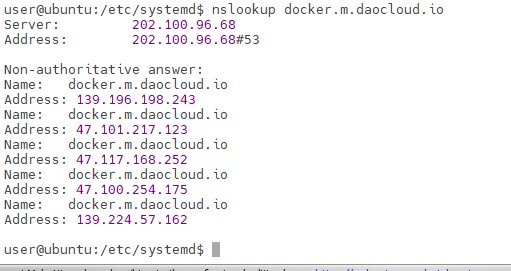 nslookup docker.m.daocloud.io