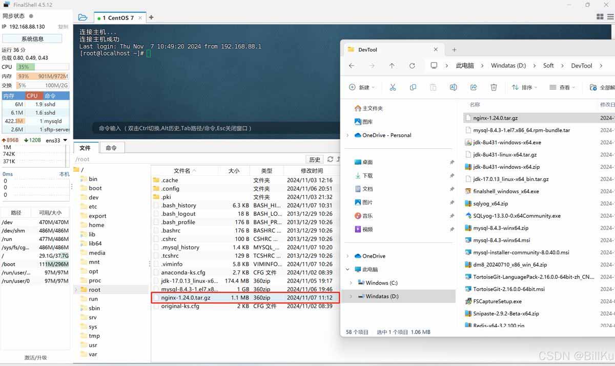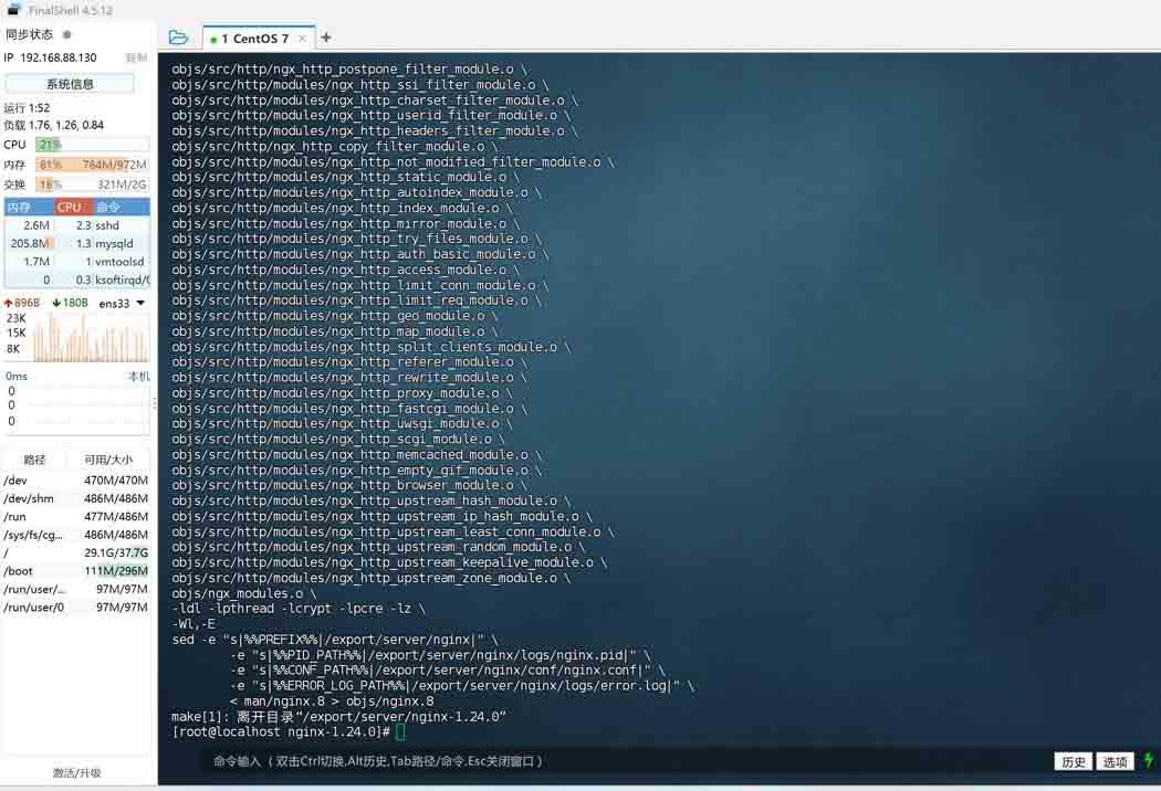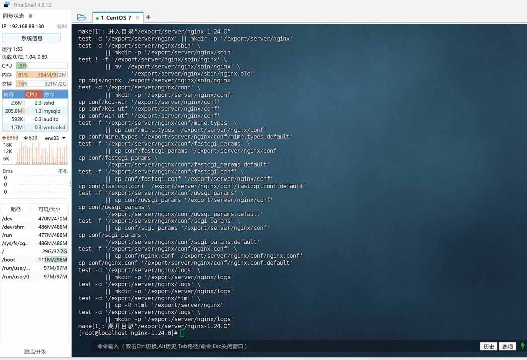 查看安装后的情况,目录 /export/server 中多了 nginx 目录