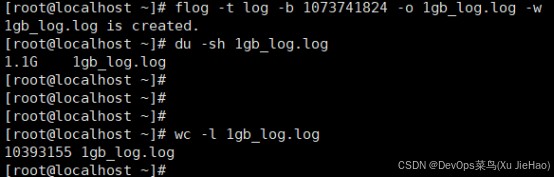 #使用-b选项生成1G的日志文件 flog -t log -b 1073741824 -o 1gb_log.log -w