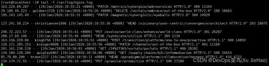 #每五秒生成一行,模拟生产环境 flog -t log -p 10 -n 2 -d 5 -l -w -o nginx.log