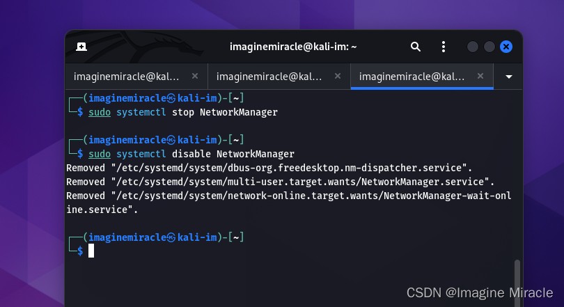[注]:NetworkManager 服务是网络服务的图形化管理工具,该服务会接管 networking 服务,因此可能会导致重启网络失败,所以需要先关闭。