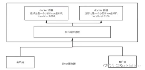 Docker是一个Client-Server结构的系统,Docker的守护进程运行在主机上,通过Socket从客户端访问!Docker Server接收到Docker-Client的指令,就会执行这个指令!