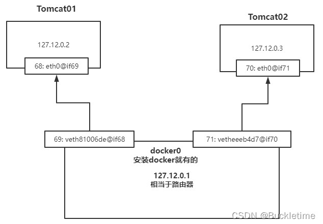 - Docker内的容器直接运行在宿主机内,容器是没有自己的内核的,也没有虚拟硬件。每个容器都是相互隔离的,每个容器都有属于自己的文件系统,互不影响。