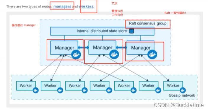 docker swarm init初始化主节点docker swarm join加入节点(manager、worker)