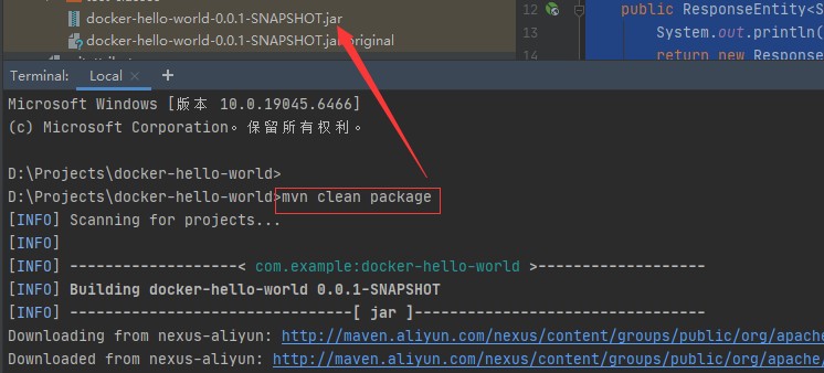 1. 执行如下命令,将项目打包成jar包
