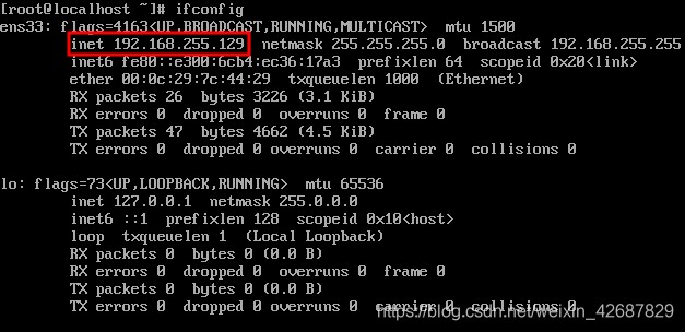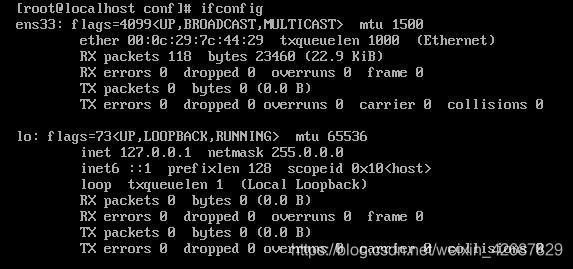 但我在查看的时候,一直查看不到,在ens33中既没有inet addr,也没有inet6 addr,