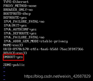 执行vi /etc/sysconfig/network-scripts/ifcfg-ens33命令查看设置也是没有问题的: