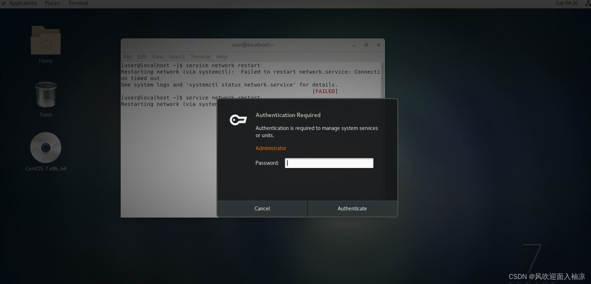7.重启网络服务可能会需要输入管理员密码,我们进行输入
