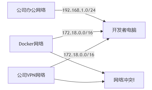 在微服务和容器化部署的时代,Docker已经成为开发者和运维人员的日常工具。然而,网络配置问题——特别是IP地址冲突——是最常见的痛点之一。当你的Docker网络与公司内部网络、云服务网络(如AWS VPC、阿里云VPC)或数据库服务(如RDS)冲突时,服务可能无法正常通信,导致部署失败。