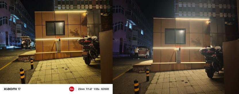 过去夜拍常见的光斑、雾化问题,在小米17上大幅改善。主摄在夜景模式下的成像噪点控制良好,画面纯净,暗部细节仍有不错保留。