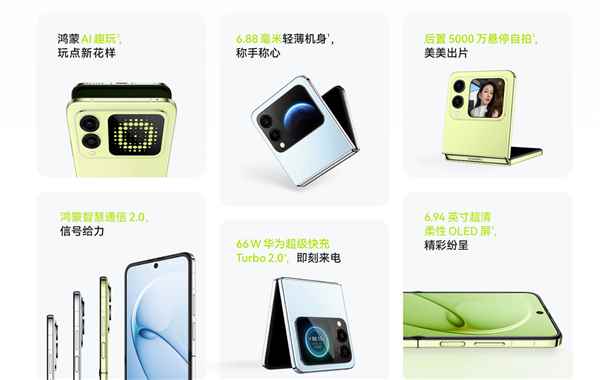 据了解,nova Flip S延续nova Flip外观设计,依然是2.14英寸1:1方形外屏,分辨率为480*480,支持通话趣显、可爱萌宠、DIY壁纸、效率桌面、外屏实况窗。