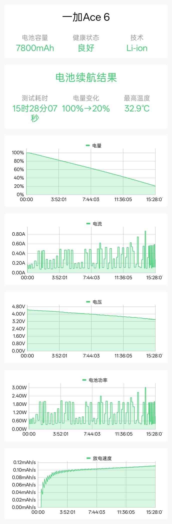 一加Ace 6在电池狗狗中坚持了15小时28分,理论满电续航19小时20分钟。无需再担心续航不足的问题。