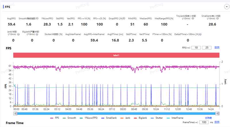《王者荣耀》进行一局120帧极致画质5V5回放,平均帧数120.1FPS,稳帧指数0.1,1%low帧110FPS。1%low帧相当强悍,游戏运行十分顺畅,除了在两场大型团战中略有掉帧意外,其余几乎是一条直线。