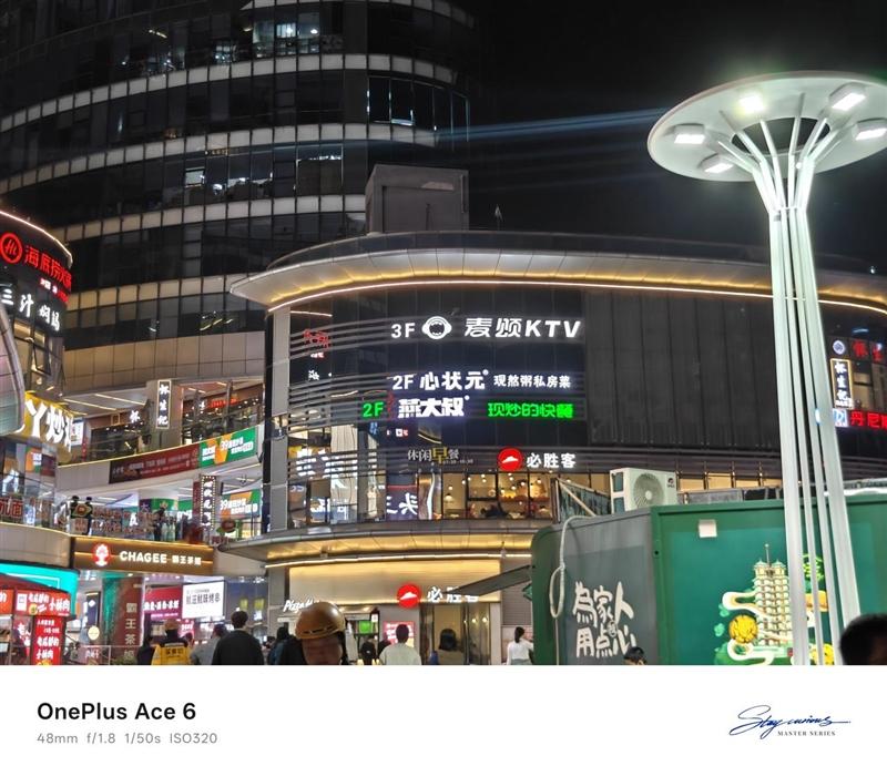 夜景下明亮的商场表现不错,亮度控制的非常可以,但是类似单点光源的场景的高光压制力还有待提升。