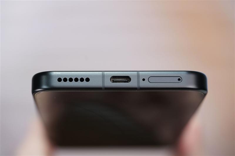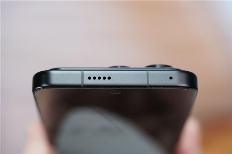 手机电池盖与中框过渡处进行了14mm微弧处理,握感圆润平滑不割手。中框则采用了雾面金属材质,除了触感冰凉外,具备很好的防指纹效果。