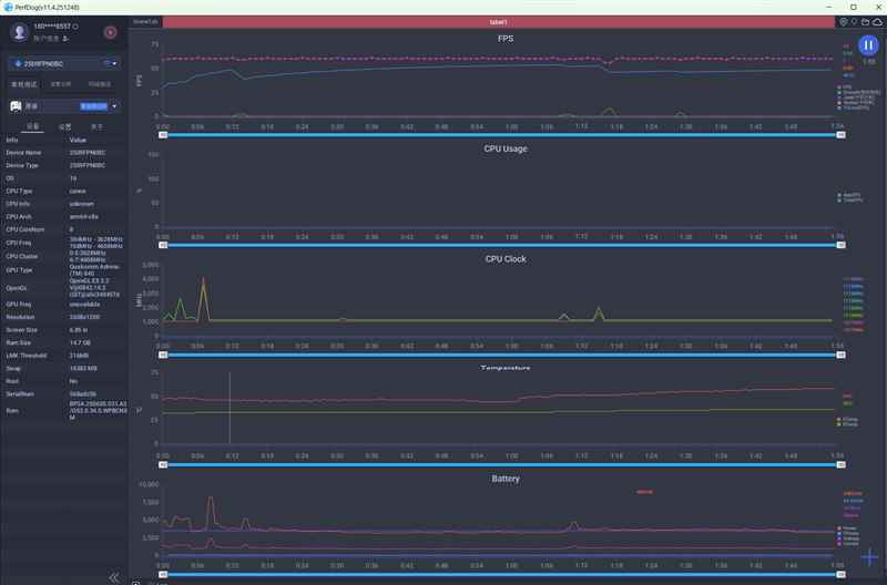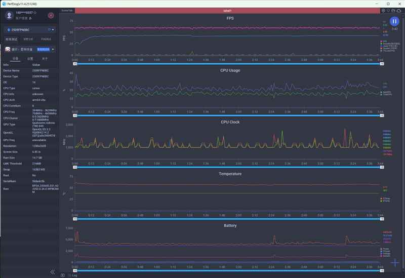 另外一款骁龙8 Elite Gen5手机,帧率也是60FPS,SOC温度54度,功耗3400mW。