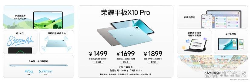 这次发布会除了手机,还有两款平板也很亮眼。荣耀平板 10 Pro 搭载 144Hz 绿洲护眼柔光屏和天玑 8350 至尊版芯片,10100mAh 大电池,PC 级交互界面,办公、学习都好用。马年新春礼盒还送荣耀 Magic-Pencil 4s 手写笔,书写流畅,礼盒版才 2499 元起。荣耀平板 X10 Pro 是 11.5 英寸 2.5K 护眼屏,8300mAh 电池,四扬声器,还有 AI 作业辅导和全年龄教育资源,8GB+128GB 版本才 1499 元,全家都能用。