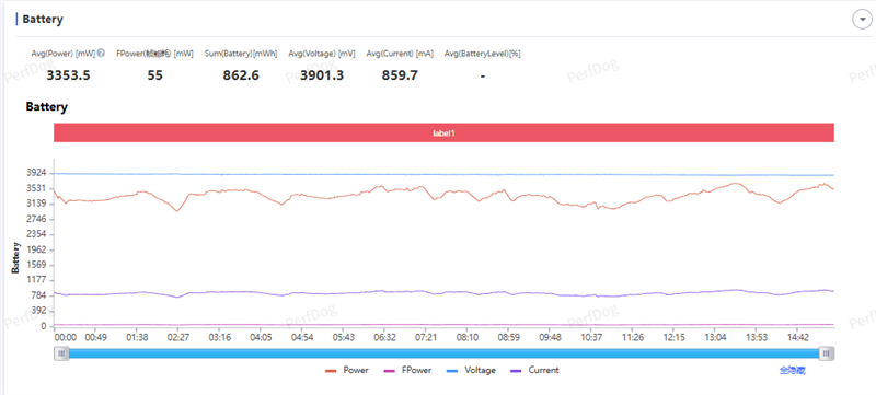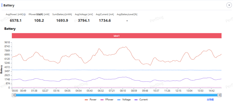 更令人惊讶的是手机的能耗表现,游戏的平均功耗为2.84W,每帧能耗低到了20mW以内。