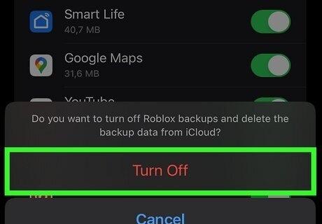 13. 关闭你想要删除的应用程序。对于任何您不想备份到iCloud的应用程序,请执行此操作。会出现确认消息。